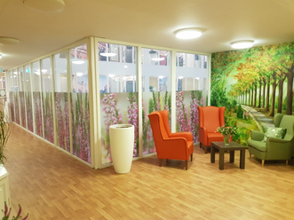 Voor één van de vestigingen van Zorginstelling Cordaan fleurden wij de ramen van de atrium enorm op. Met prachtige sfeer foto's op etsfolie geprint ziet het er heel gezellig uit, waardoor de klanten een prettig uitzicht hebben.